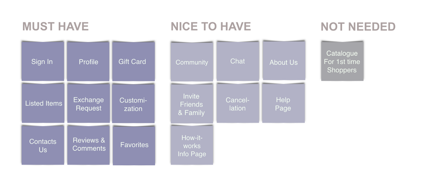 MVP and Feature Prioritization: How we went about figuring out our MVP (minimal viable product), we used The Bucket Method to prioritize the features we wanted the app to have.