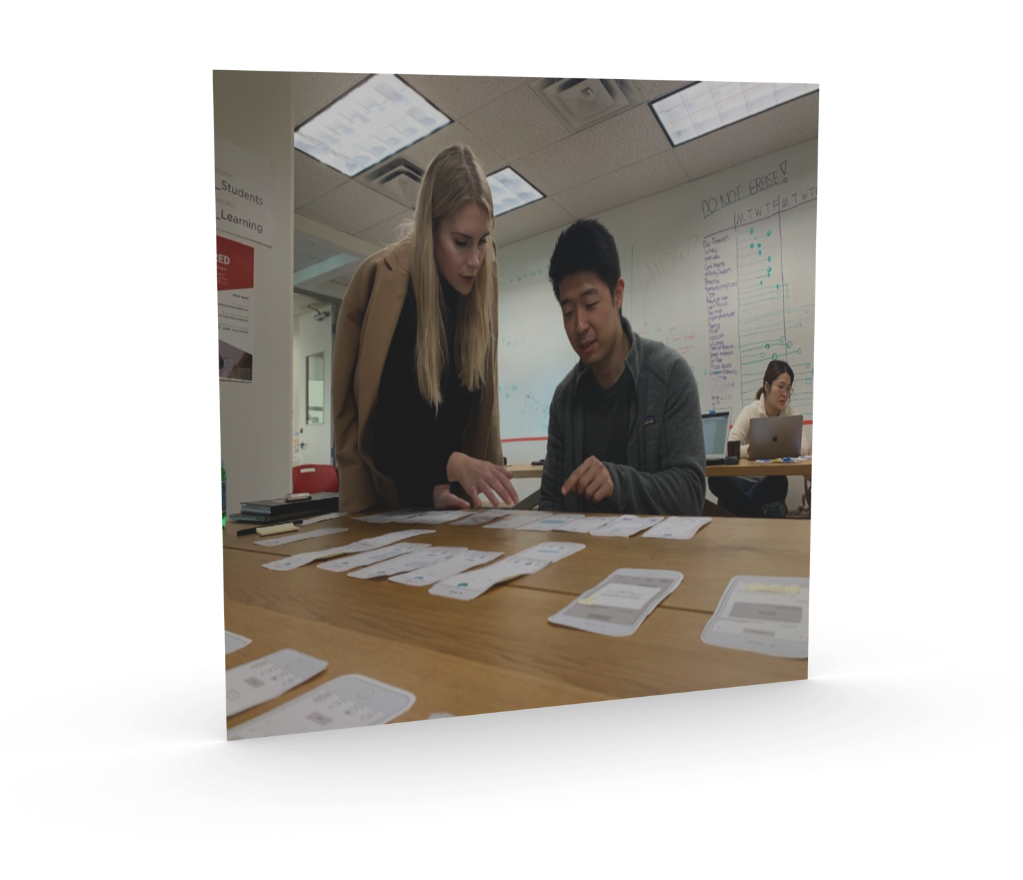 Testing: We put our low-fi paper prototypes to the test by getting our fellow colleagues/classmates tasks to we wanted them to complete.